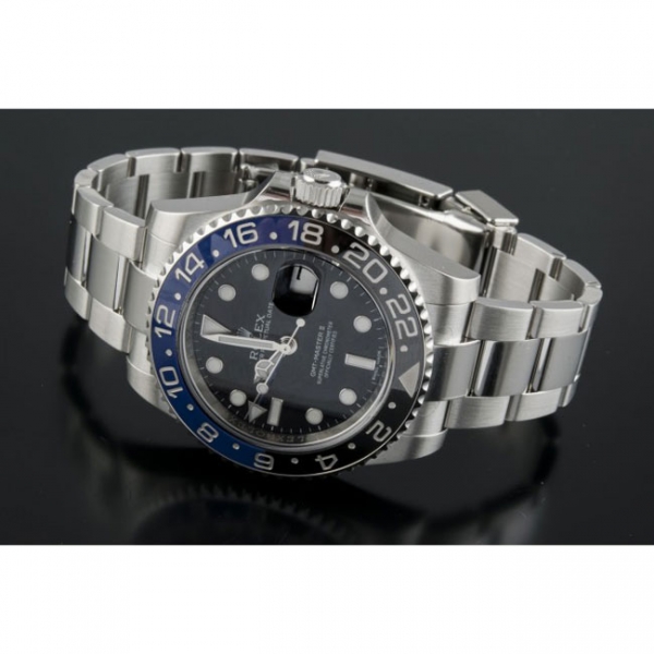 Realizado en acero para caballero. Caja redonda, bisel giratorio bidireccional graduado 24 horas y disco Cerachrom bicolor azul y negro. Funciones: horarias, minuteras, segunderos y calendario. Esfera de color negra, agujas luminiscentes. Numeración de puntos de tritio y ventana con lente Cyclops para calendario a las 3h. Sistema de carga automático. Brazalete original de acero con cierre de seguridad desplegable Oysterlock. Nº:1988Q3Z1.Información adicional