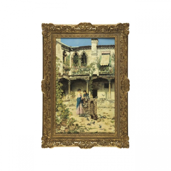JOSE GALLEGOS Y ARNOSA (Jerez de la Frontera, Cádiz, 1857-Anzio, Italia, 1917) - Dando de comer a las palomas