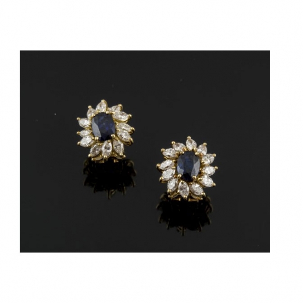 Realizados en oro, formados por dos zafiros talla oval, peso total aproximado: 2.60 ct., orlados por diamantes talla marquisse, peso total aproximado: 2.16 ct. Fecha de fin 20/12/2017 a las 12:15:00