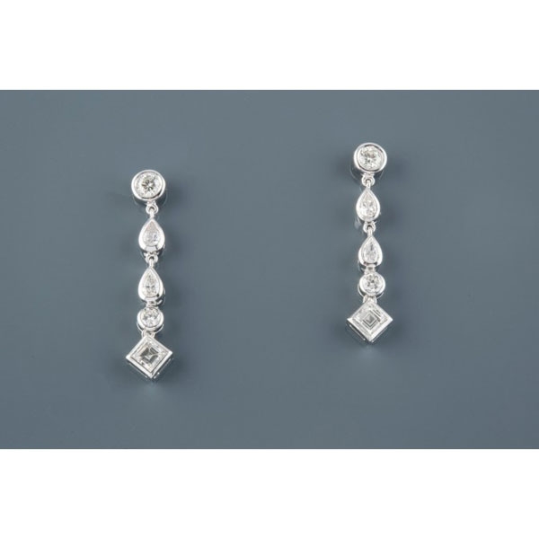Realizados en oro blanco, compuestos por una hilera de diamantes tallas brillante, perilla y carré, peso total aproximado: 1.90 ct. Fecha de fin 18/01/2018 a las 13:39:00
