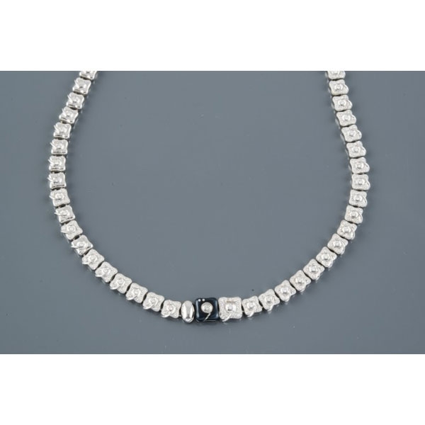Realizada en oro blanco, formada por eslabones geométricos cuajados de diamantes talla brillante, peso total aproximado: 4.20 ct. ( uno esmaltado ). Fecha de fin 18/01/2018 a las 16:42:00
