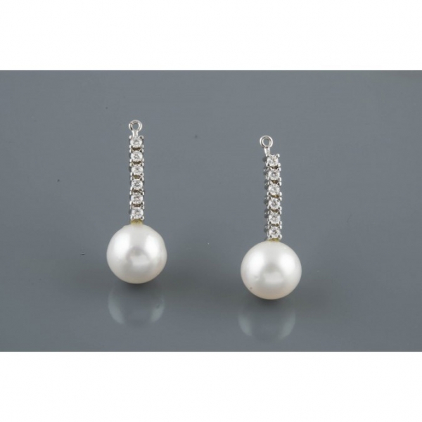 Realizados en oro blanco, formados por dos hileras de diamantes talla brillante, peso total aproximado: 0.96 ct., rematados en dos perlas australianas calibradas en 11.2 mm.