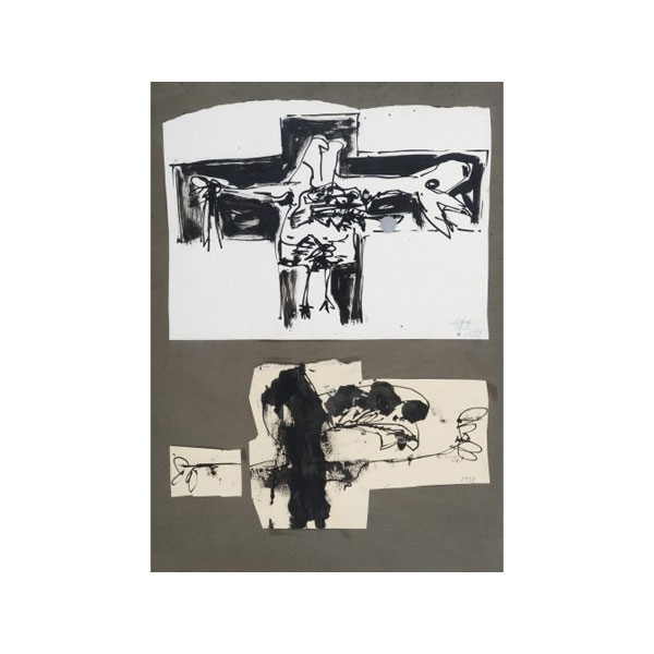 Gouache, tinta sobre papel y collage sobre cartón de 69.5 X 50cm. Firmado y fechado en 1958-1959