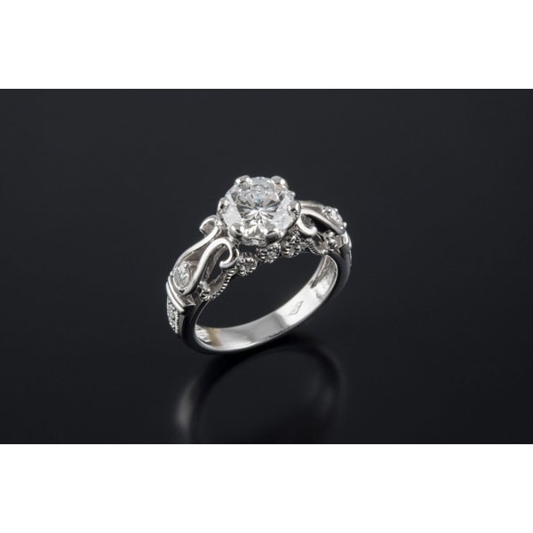 Realizado en oro blanco, con diamante talla brillante. Peso: 1.51 ct. Color: D. Pureza: VS2. Según certificado HRD Nº 170002982906. acompañado por diamantes talla brillante, peso total aproximado: 0.18 ct.