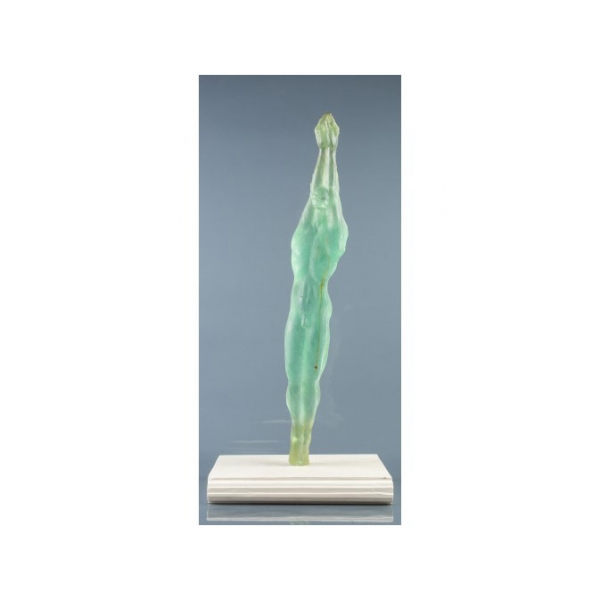 Figura en resina color verde de 60 cm. Sobre base en madera policromada en blanco.
