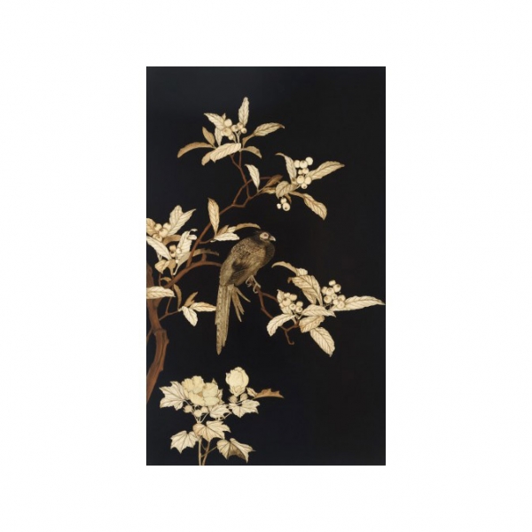 En madera lacada en negro decoradas con motivo de ramas florales y frutos aplicados en relieve realizadas con placas en marfil tallado.