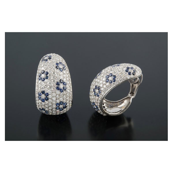 Zafiros talla redonda formando motivos de flores, peso total aproximado: 8.64 ct. Cierre clip.