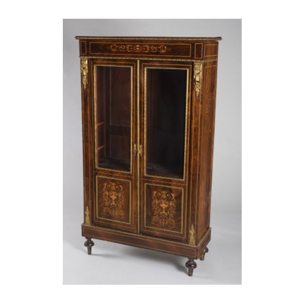Chapeada en palosanto con decoracion de marqueteria con motivos florales.