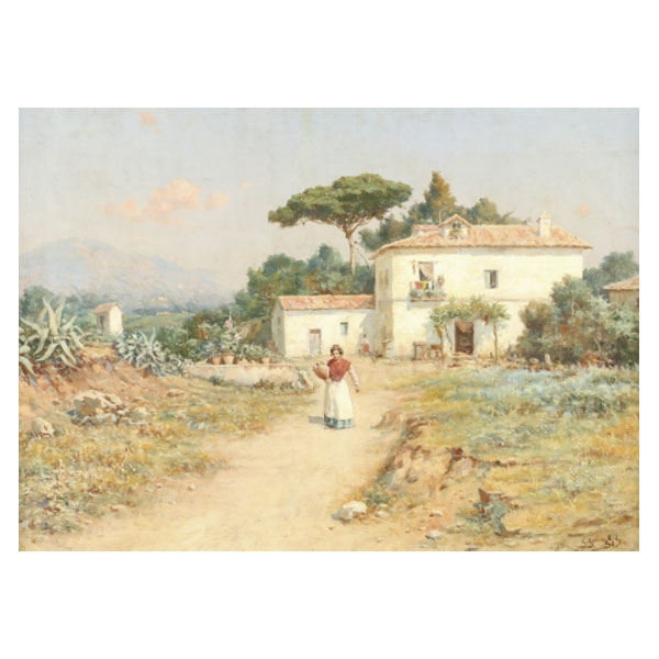 GUILLERMO GÓMEZ GIL (Málaga, 1862-Cádiz 1942), Muchacha con cantaro en un cortijo