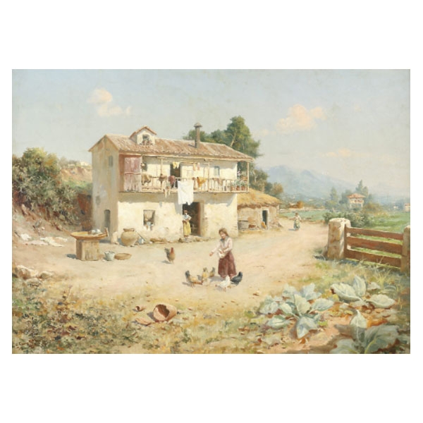GUILLERMO GOMEZ GIL (Malaga 1862-Cadiz 1942), Paisaje rural con gallinas,