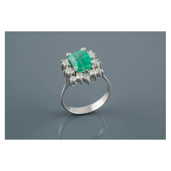 Realizada en oro blanco, con esmeralda central talla esmeralda, peso total aproximado; 2.50 ct..
