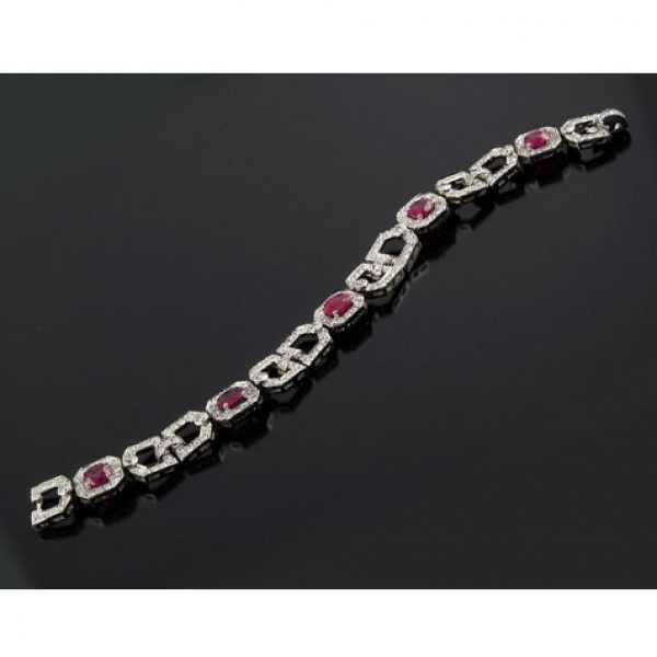 y cinco rubíes tallas redonda y oval, peso total aproximado: 7.10 ct.