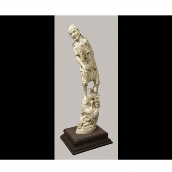 Representando un pescador y un niño, tallada en marfil según certificado de Garantía de la Federación Española de Anticuarios Nº 000901.