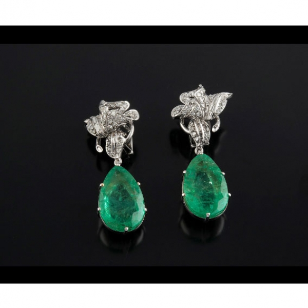 peso total aproximado: 1.32 ct. e inferior compuesta por dos esmeraldas talla perilla, peso total aproximado: 25.71 ct.