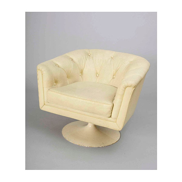 Pie Saarinen en aluminio pintado al fuego en blanco y tapizado capitoné en curpiel blanco.