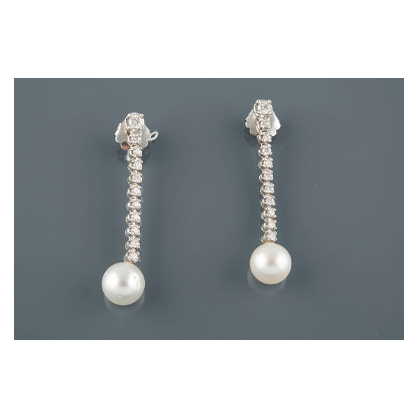 Compuestos por una hilera de diamantes talla brillante, peso total aproximado: 1.16 ct. rematada en dos perlas australianas calibradas en 10 mm.