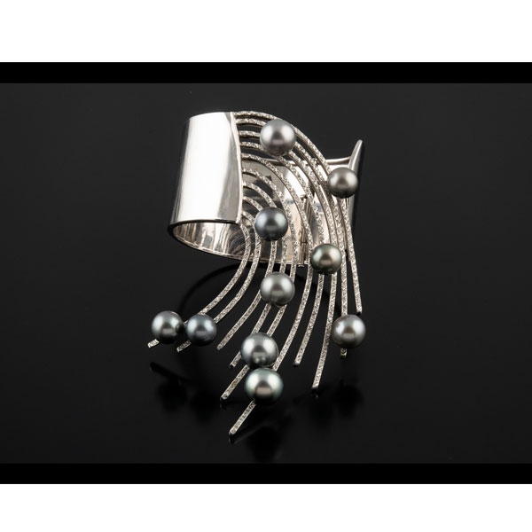 peso total aproximado: 3.35 ct. con perlas de Tahití calibradas entre 10 y 13 mm.