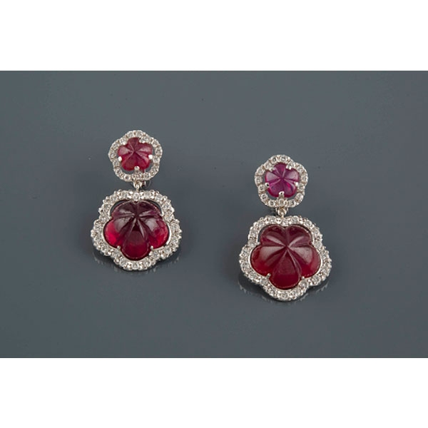 Realizados en oro blanco, formados por cuatro flores compuestas por rubíes tallados, peso total aproximado: 39.10 ct.