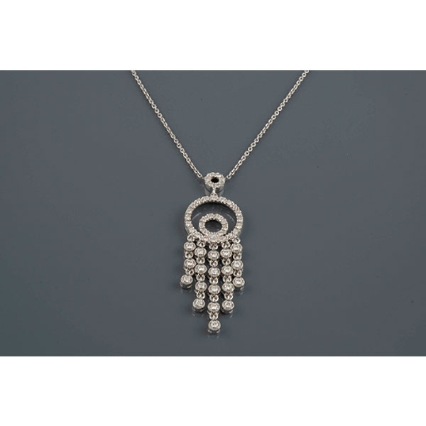 Realizado en oro blanco, con motivos circulares de los cuales pende hileras formados por diamantes talla brillante, peso total aproximado: 1.27 ct.