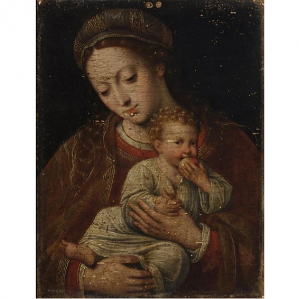 A comparar con la Virgen con Niño conservada en el Fitzwilliam Museum, University of Cambridge, catalogada en: - Gerson, Horst. Goodison, J. W. 1960. Catalogue of Paintings in the Fitzwilliam Museum, Cambridge, Vol. I, Dutch and Flemish. Cambridge, p. 21
