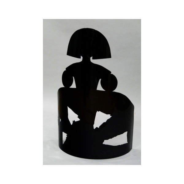 Escultura con pintura lacada en negro tratada al horno a más de 200 grados.