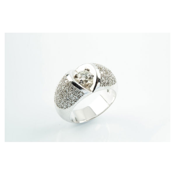 Realizada en oro blanco formada por un diamante central talla brillante, peso total aproximado: 0.28 ct.,