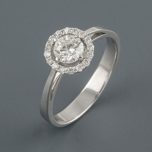 Realizada en oro blanco, compuesta por un diamante talla brillante, peso aproximado: 0.44 ct., orlado de diamantes talla brillante, peso total aproximado: 0.68 ct.