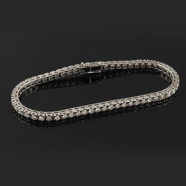Realizada en oro blanco tipo rivieré, compuesta por diamantes talla brillante montados en garras de cuatro puntas, peso total aproximado: 2.29 ct.
