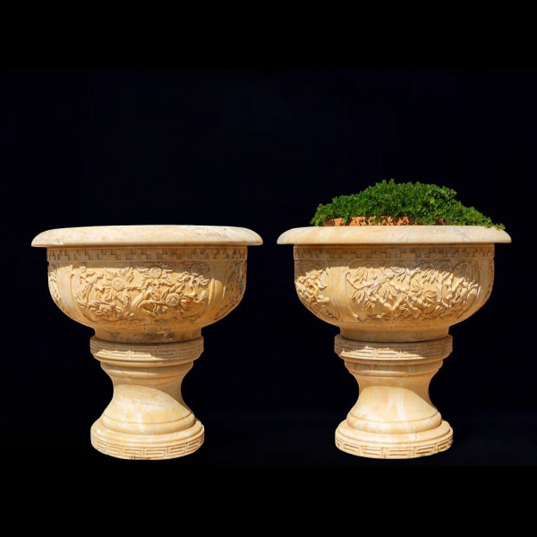 Pareja de copas de mármol amarillo siguiendo modelos clásicos siglo XX.