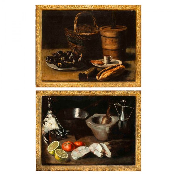 Atribuido a Luis Meléndez, Pareja de importantes bodegones (Nápoles, 1716-Madrid, 1780).