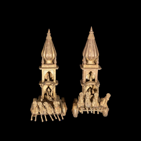Rara Pareja de Carriolas con Pagodas budistas Tailandia o Birmania siglo XIX.
