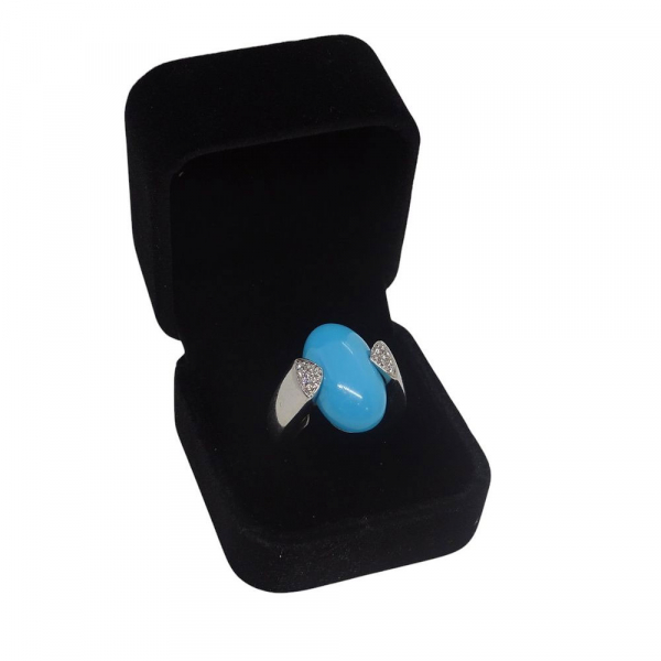 Anillo / Sortija oro blanco 18k, cabujón de turquesa y brillantes, 60’s.