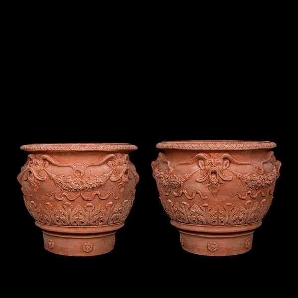 Pareja de jarrones decorados con faunos, terracota Impruneta, finales del siglo XX Perfectas condiciones.