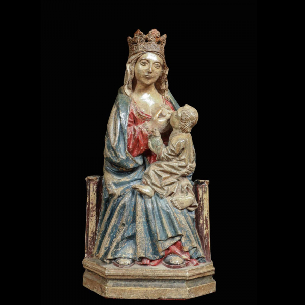 En piedra tallada con policromía original, excelente estado de conservación y conservando su policromía de origen en la mayor parte de la obra.