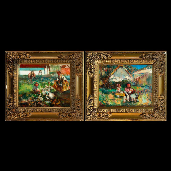 Escuela Española del siglo XIX - Pareja de escenas costumbristas.