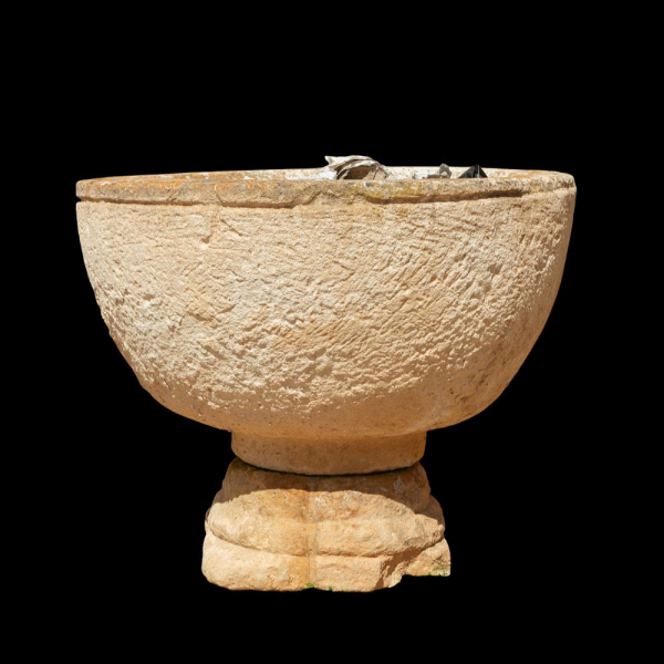 Pila bautismal románica del siglo XIII, en piedra caliza.