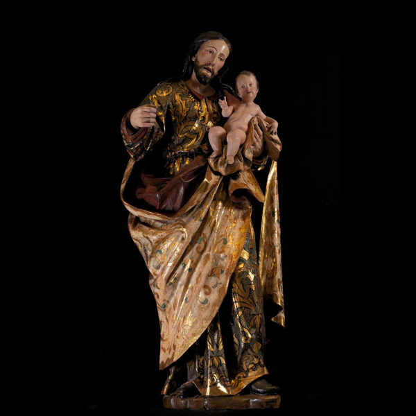 Gran San José con Niño en talla, trabajo colonial Novohispano de finales del siglo XVII.