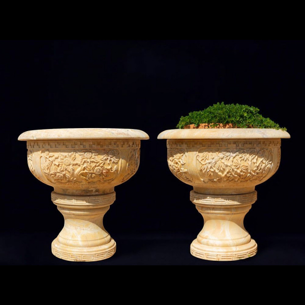 Pareja de copas de mármol amarillo siguiendo modelos clásicos siglo XX.