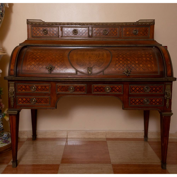 Precioso "Bureau a Plat" con escudo Borbónico en marquetería de principios del siglo XX finales siglo XX.