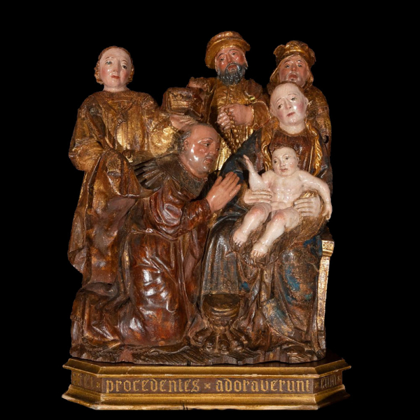 Importante Adoración Gótica de Brabante del siglo XV , con peana del siglo XIX.