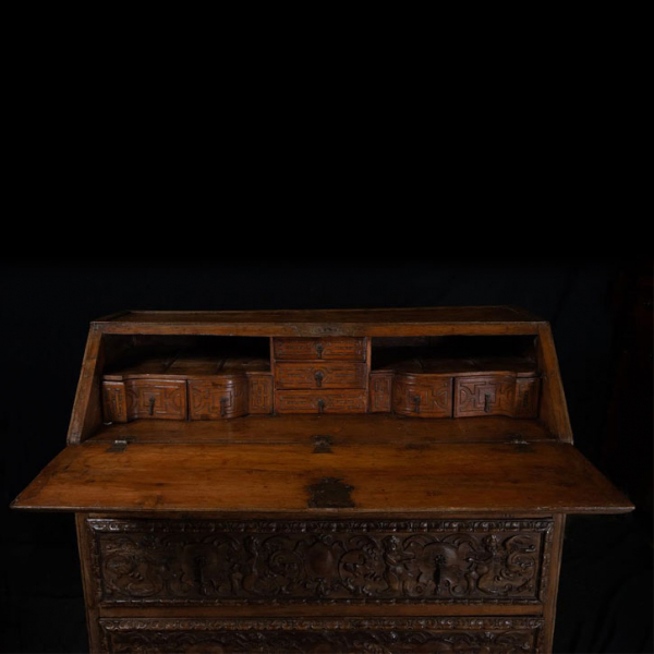 Excepcional Escritorio Canterano Plateresco, escuela Renacentista española del siglo XVI. En madera de nogal