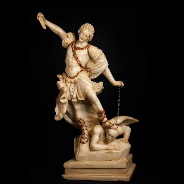 Gran San Miguel Arcángel en alabastro, Italia. Trabajo Romano del siglo XVII.