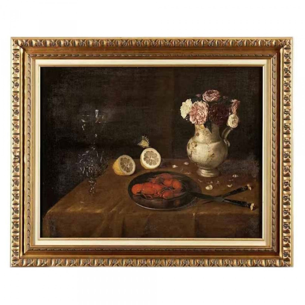 Esta refinada naturaleza muerta, realizada en la primera mitad del siglo XVII, reúne sobre un entablamento una serie de objetos y alimentos dispuestos con un marcado sentido de equilibrio formal y de resonancia simbólica. Dos cangrejos de río aparecen alineados en una fuente de plata, acompañados por dos medios limones, mientras a la derecha un cuchillo y un tenedor se cruzan sobre la mesa. Dominando la composición se alzan dos recipientes contrastados entre sí: una copa de cristal soplado, translúcida, que deja ver un vino blanco de reflejos dorados, y un recipiente cerámico más robusto que sirve como jarrón improvisado para un ramo de rosas marchitas cuyos pétalos comienzan a desprenderse sobre el mantel. La oposición entre materiales, formas y usos —lo precioso frente a lo modesto, lo delicado frente a lo rústico— articula toda la composición y remite al lenguaje simbólico propio de la vanitas, recordando la fragilidad de los bienes terrenales y el paso inevitable del tiempo. A ello se suma la presencia de una mariposa, único signo de vida en la escena, que refuerza aún más la idea de lo efímero. La obra se inscribe en la tradición de la escuela de naturalezas muertas de Fráncfort, desarrollada a comienzos del siglo XVII en torno a figuras como Georg Flegel (1566–1638), uno de los principales representantes del género en la ciudad. Formado en un contexto marcado por influencias flamencas y neerlandesas, Flegel y los artistas de su entorno desarrollaron un tipo de naturaleza muerta de gran refinamiento técnico, minuciosa observación y fuerte carga simbólica. En este mismo ambiente trabajaron también pintores como Daniel Soreau (hacia 1560–1619) y Pieter Binoit (1590–1632), vinculados a los círculos artísticos de Hanau y Fráncfort, así como Sebastian Stoskopff (1597–1657), cuya obra comparte con este lienzo el gusto por la disposición medida de los objetos, la calidad táctil de las superficies y la silenciosa intensidad poética de la escena. La composición participa plenamente de ese universo visual en el que confluyen la tradición flamenca, la sensibilidad germánica y una elaborada reflexión moral sobre la fugacidad de la vida. Procedencia: venta anónima, Nueva York, Sotheby’s, 7 de abril de 1989, lote 77 (como Escuela francesa del siglo XVII); David Koetser, Zúrich, 1989–1990, nº 22 del catálogo (como J. van Winghen); venta anónima, París, Ader, Picard, Tajan, 5 de diciembre de 1990, lote 30 (como J. van Winghen); adquirida en dicha venta por el actual propietario; colección particular, Doubs. Lote en almacén internacional (fuera de la UE). Para envíos a la Unión Europea se aplicarán derechos y/o impuestos de importación a cargo del comprador.