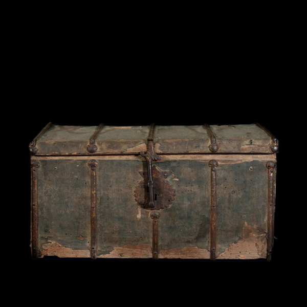 Con todos sus herrajes de origen rematados en forma concha de Santiago, terciopelo de origen, buen estado de conservación original, medidas: 53,5 x 35 x 32 cm. Procedencia: importante colección particular española.