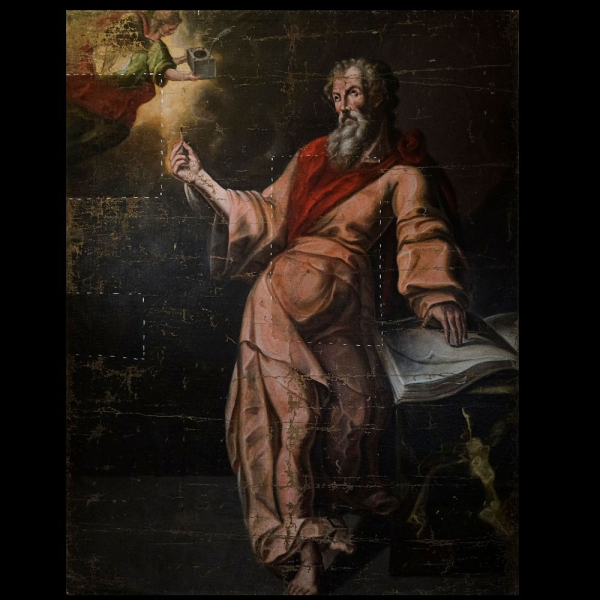 Óleo sobre lienzo de medidas: 195 x 155 cm. Buena conservación en policromía, pequeñas faltas y saltos, precisa limpieza. Bibliografía de referencia: Victoria, José Guadalupe (1994). Un pintor en su tiempo: Baltasar de Echave Orio. UNAM. ISBN 9789683631022. Procedencia: colección particular española.