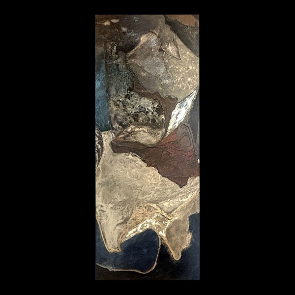 Técnica mixta de collage y óleo sobre lienzo. Medidas: 199 x 82 cm.