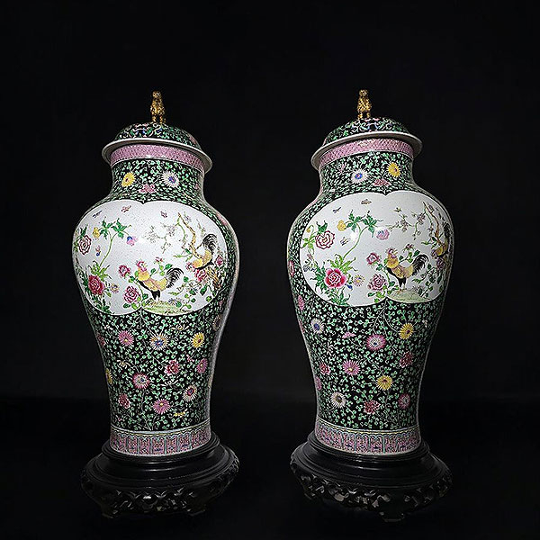 Porcelana esamltada y policromada. Medidas: Con base verde: 190 cm x 70 cm x 70 cm , Sin base: 155 cm x 70 cm x 70 cm , Sin base: 155 cm x 70 cm x 70 cm