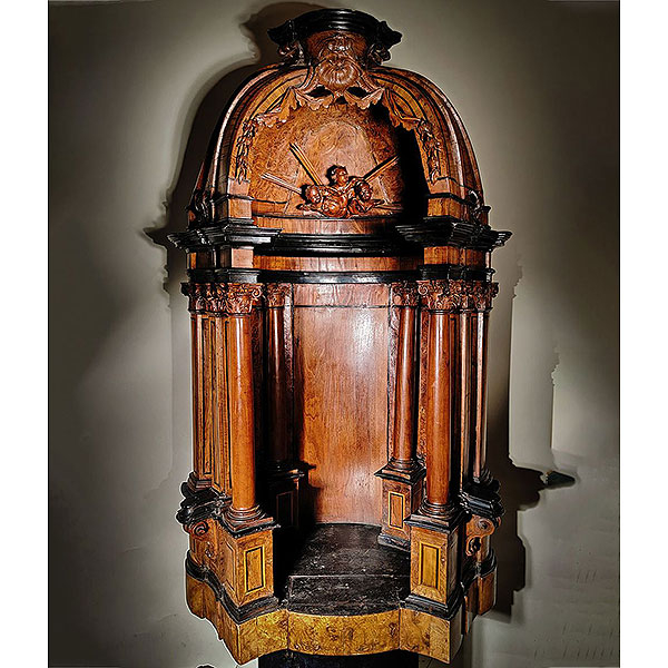 IMPORTANTE TABERNÁCULO ALEMÁN EN MUSEO SIGLO XVI-XVIIEXCEPCIONAL TABERNÁCULO DEL SUR DE ALEMANIA DE FINALES DEL SIGLO XVIPRINCIPIOS DEL SIGLO XVII.ESTÁ HECHO EN MADERA DE FRUTALES CON UNA FORMA ARQUITECTÓNICA ESCULPIDA Y EBONIZADA. MEDIDAS 128X87X50 CM